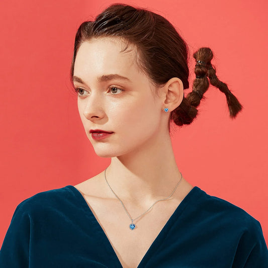 December Synthetic Turquoise Gemstone Pendant 925 Sterling Silver Choker Necklace CZ Love Heart Diamond Necklace for Women Wife Mom Daughter