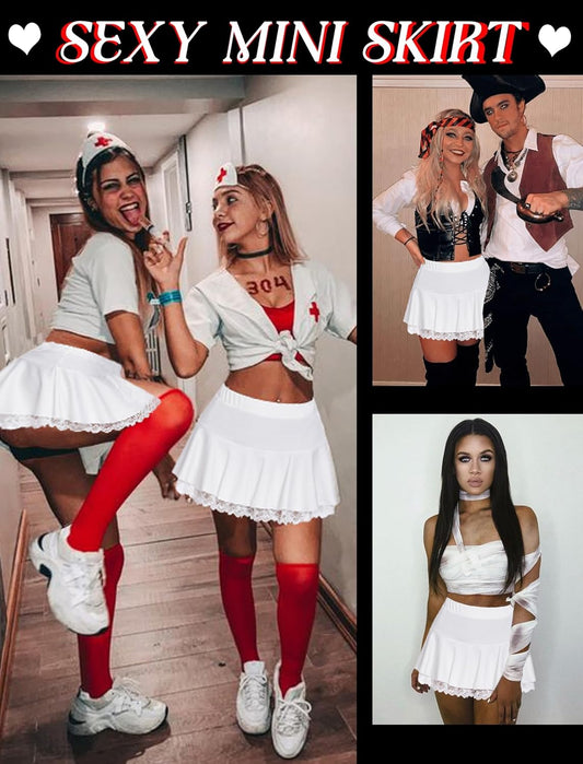 Women Pleated Mini Skirt Sexy Lace Ruffle Solid Skirt Lingerie Short Skirts